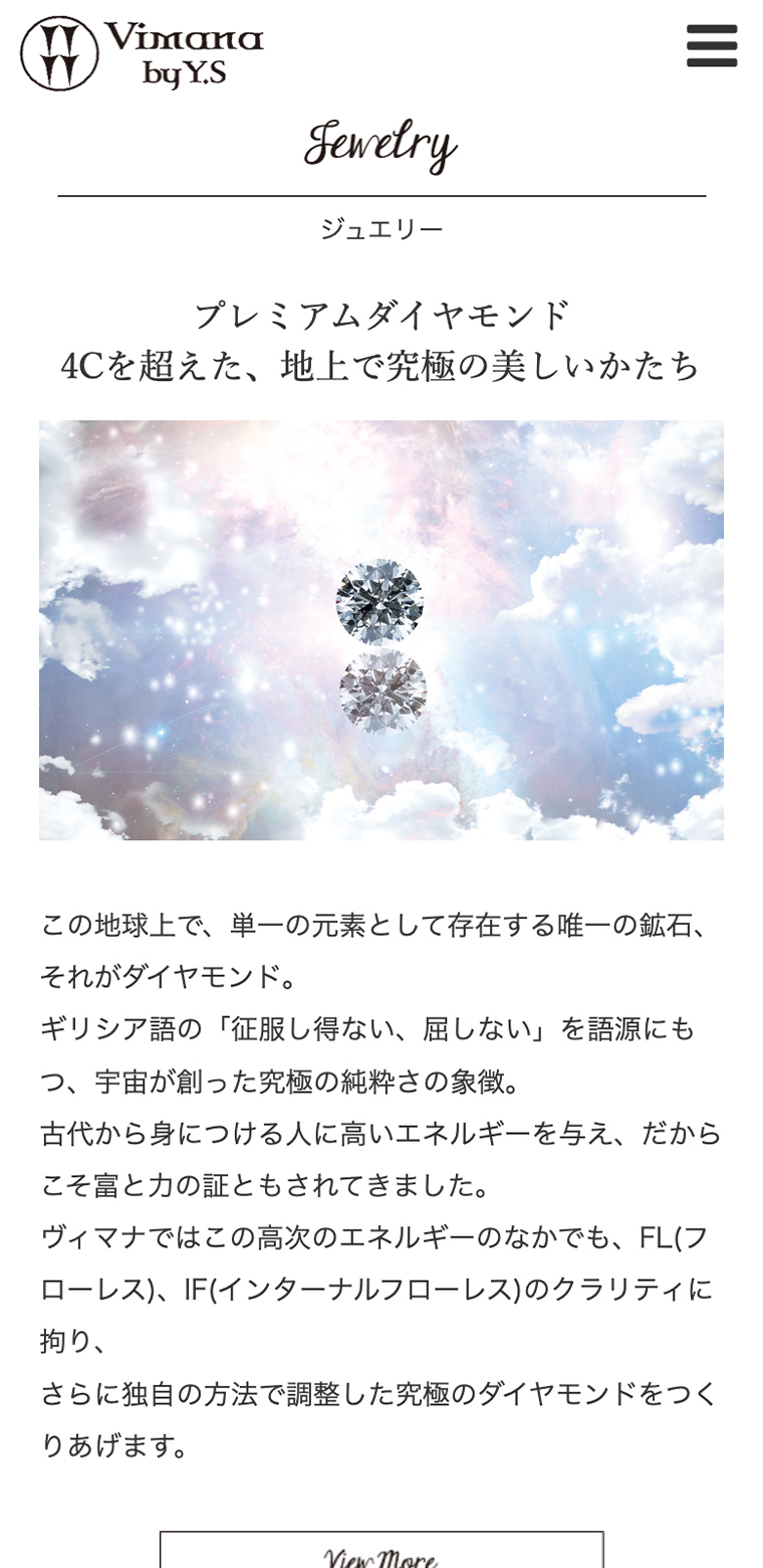 ジュエリーショップ「Vimana by Y.S」様のWebサイト制作に携わらせていただきました。